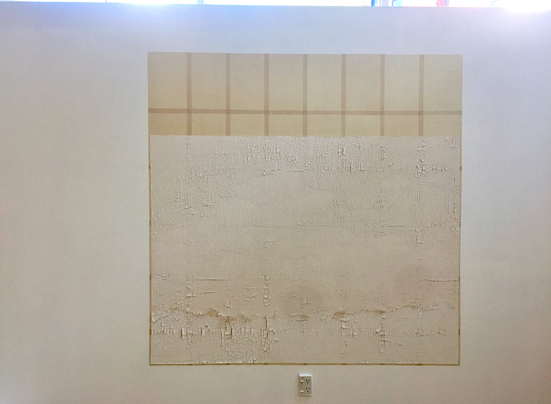 The absorbent quality of the fabric provides a fluid transition for the layers of stains of paint, which I find representative of changes and transitions in my work in regards to the landscape and the influence of landscape on mindfulness.